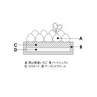 岡山県産いちごがもつ酸味は、甘くて濃厚なカスター ドと相性が抜群です。自家製の香ばしく焼き上げたタルト生地にアーモンドクリームを焼き込め、当店自慢のカスタードをたっぷり絞りました。