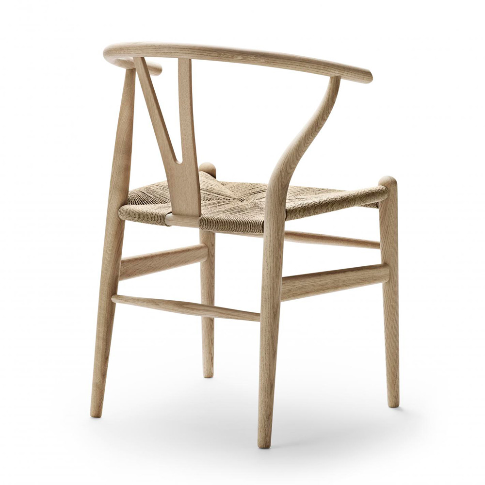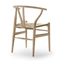特徴的なフォルムからモダンデザインの名作として知られるハンス J. ウェグナーのCH24(Yチェア)。アームと背もたれを一体にするという、それまでの椅子デザインに見られなかった斬新な試みをしており、この印象的なY字型の背もたれが安定性と心地よい使用感を与えます。素晴らしい使用感と使い勝手、そして特徴的なラインを描く美しいフォルムのチェアです。