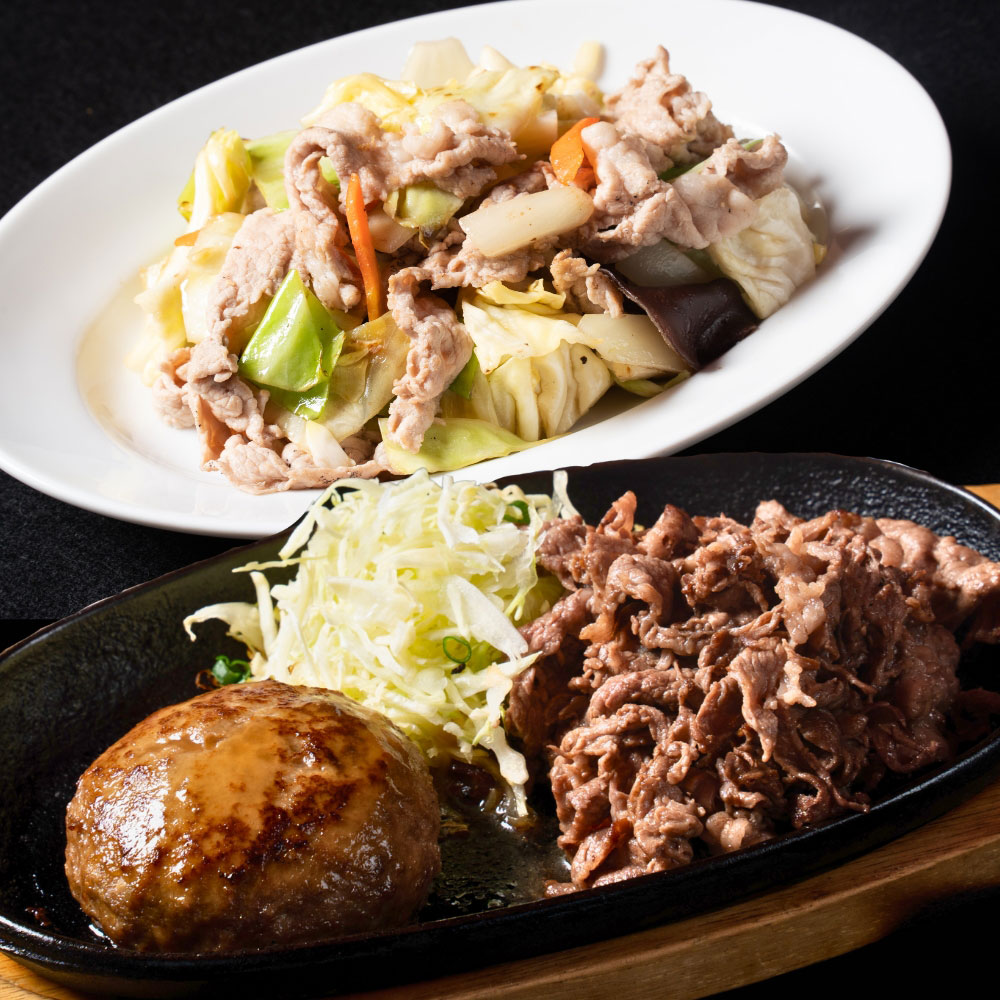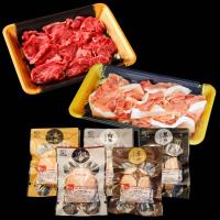 国産牛切り落とし(250g)、白金豚切り落とし(250g)、金格ハンバーグ(120g)1個、白格ハンバーグ(120g)1個、黒格ハンバーグ(120g)1個、牛醤ハンバーグ(120g)1個、薫格ハンバーグ(120g)1個