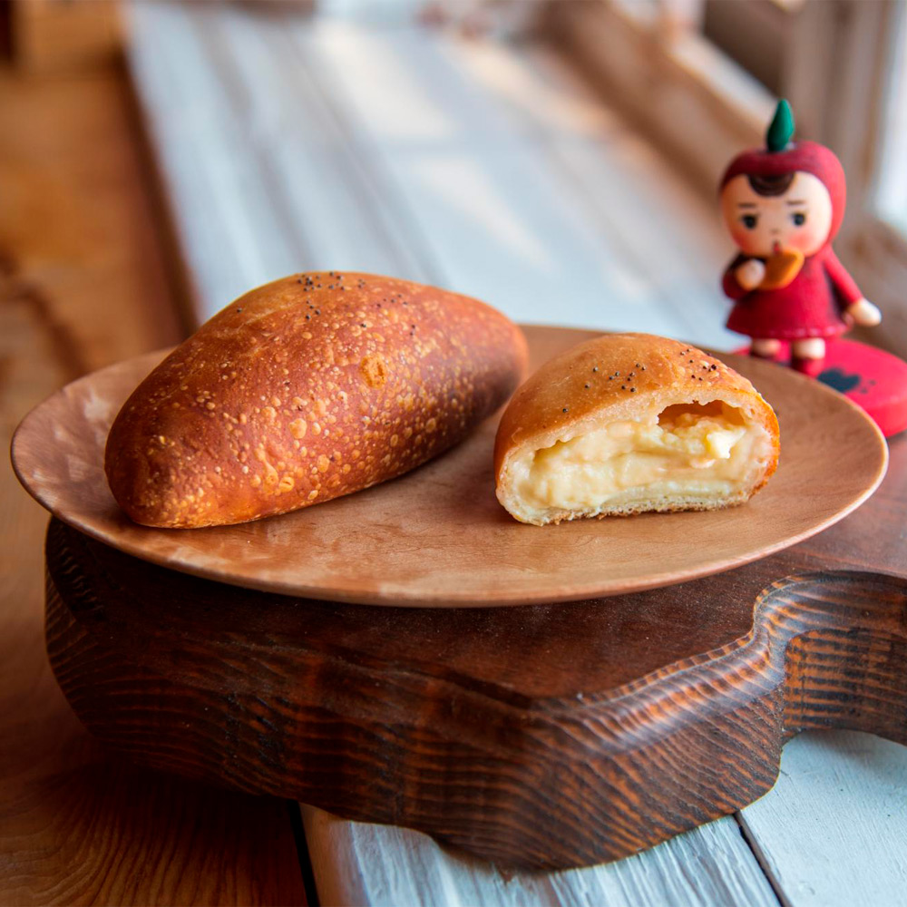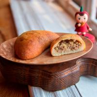 函館・元町にある焼きピロシキとボルシチの店「まるたま小屋」より、北海道産食材で作る、揚げずに焼いたヘルシーな焼きピロシキです。生地にはバターや卵を使わず、北海道産の小麦粉・米粉・おから・米油・三温糖・よつ葉のスキムミルクを使用し、皮が薄く具がたっぷりなのが特徴です。シンプルな「ミートエッグ」「チキンきのこ」「じゃがバター」「まるたまクリーム(オリジナルのカスタードクリーム)」の4種類を各2個ずつ合計8個入りに詰め合わせました。