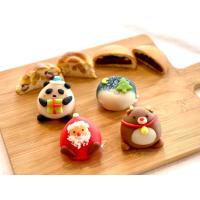 季節の創作上生菓子×4個(「サンタさん(いちご餡入練切製)」・「トナカイ(こし餡入練切製)」・「ツリー(粒餡入練切製)」・「パンダちゃん(白あん入煉切製)」各1)、クリスマス焼菓子×4個(さつま芋餡入・チョコレート餡入 各2)