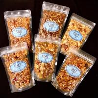 人気No.1「シナモンアップルグラノーラ」、誰からも好まれる「フルーツグラノーラ」、深煎りのコーヒー豆を砕いて入れた「エスプレッソグラノーラ」、チョコチップ入りの定番品「チョコレートグラノーラ」、ノンオイルタイプの「ヘルシークランチグラノーラ」、芳醇なベルガモット香る「アールグレイグラノーラ」。お箱にはお入れしておりません。ダンボール箱にそのままお詰めしてお届けいたします。