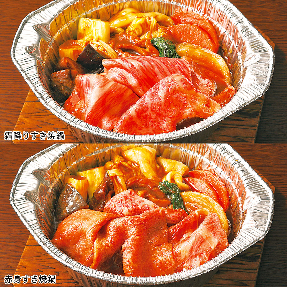 霜降りすき焼鍋・赤身すき焼鍋各250g×2個、2種計4個、すき焼のタレ130g×4
