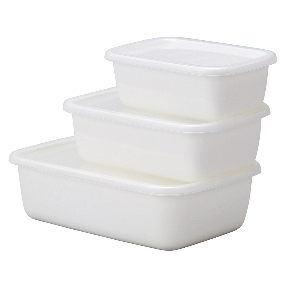 耐熱性・耐冷却に優れた琺瑯は、冷蔵庫での保存やオーブン調理など幅広く活用いただけます。酸や塩分に強い琺瑯は、漬物やピクルスなどの保存にも最適。表面がガラスのため非吸着性に優れており、においや汚れが付きにくいです。