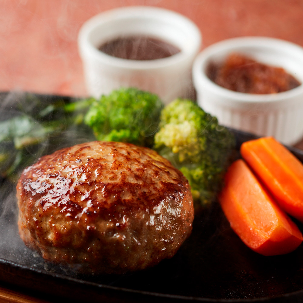 黒毛和牛とブランド豚の贅沢ハンバーグを食べ並べ