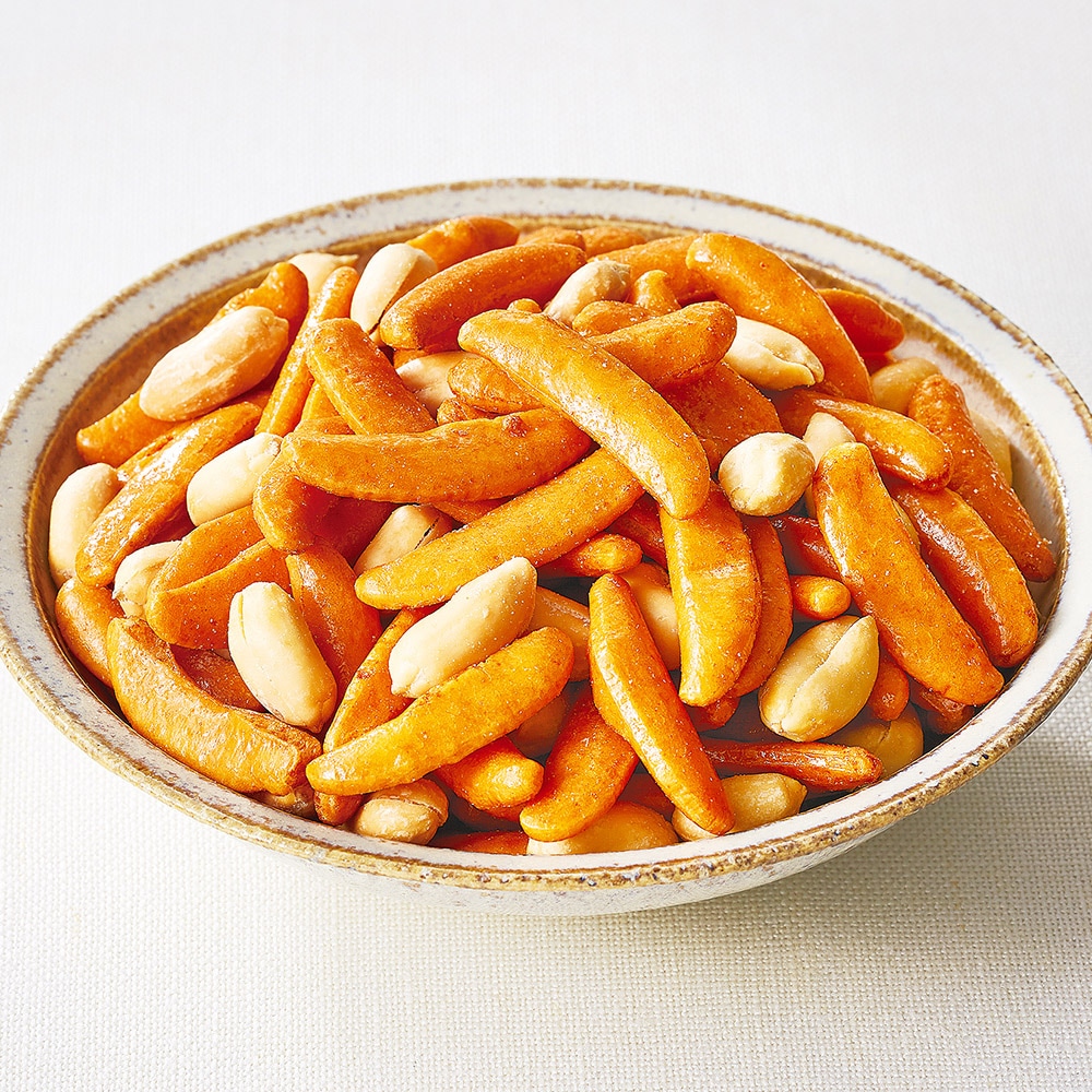 国産米を使い醤油味で丹念に焼き上げた大粒の柿の種と、千葉県産のピーナッツをブレンドした、食べ応えのある柿ピーです。