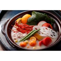 2人前:伊勢海老、雲子、柚子、どんこ椎茸、法蓮草、聖護院大根、金時人参、南瓜、金柑、いんげん、銀杏、蓮根、蓬餅、白味噌だし