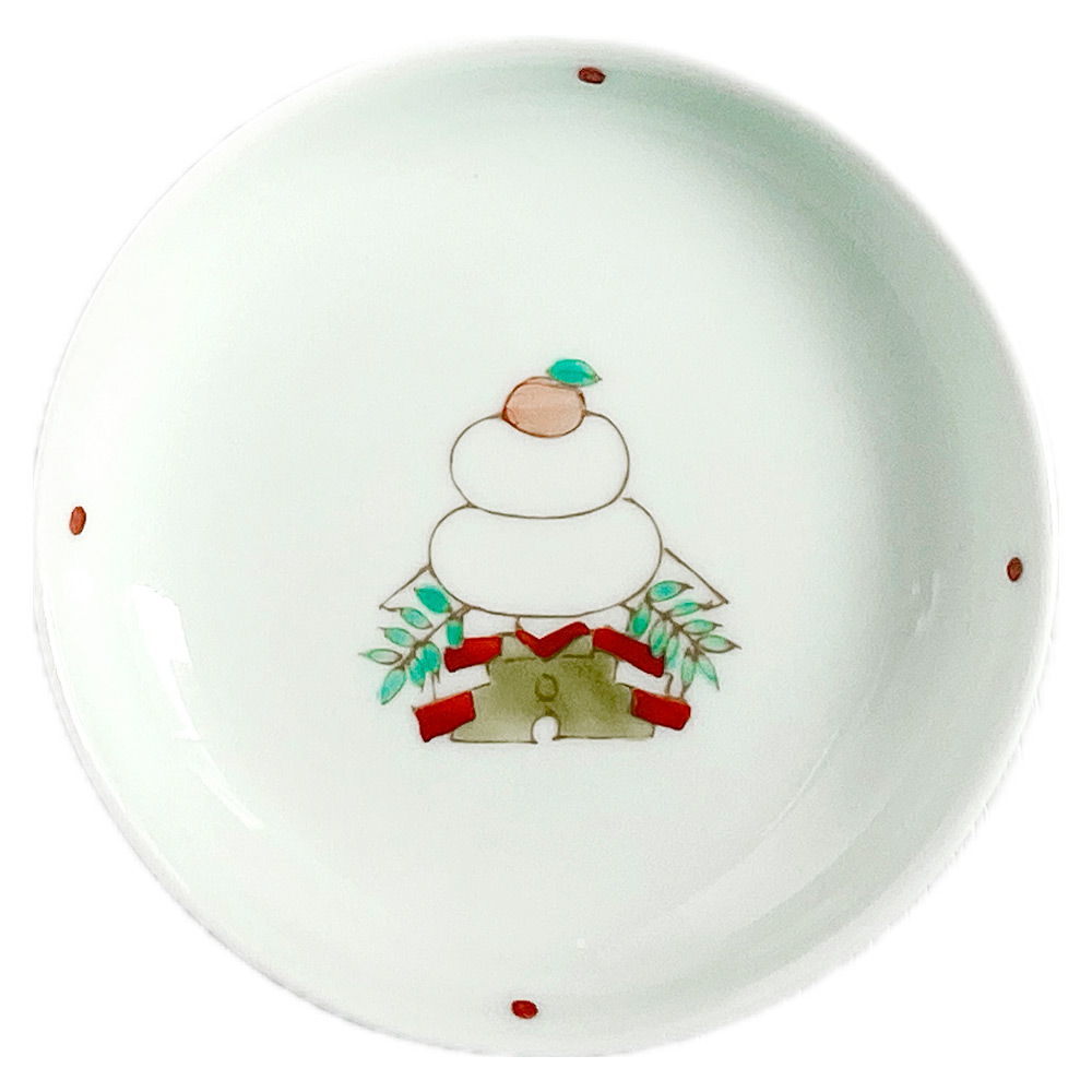 新年の神様の象徴が鏡餅。姫碗で屠蘇をいただいたりお節料理にも。小皿もお節の数の子や黒豆などの取分け小皿に。