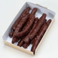 オレンジピールとビターショコラの甘美がマッチ。表面にクラッシュアーモンドをトッピングしてビターチョコレートでコーティング。チョココーティングとピールのバランスにクラッシュアーモンドが絶妙なバランスに。