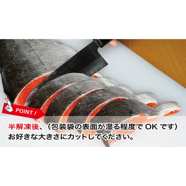 24時間の低温熟成製法で紅鮭本来の美味しさを引き出しました。お好みの大きさに切って焼いてお召し上がりください。鮭、辛子明太子ともに、ご飯のおともに最適です。