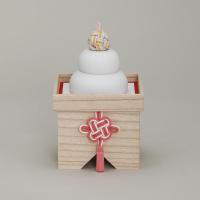 新しい年を晴れやかな気持ちで迎えるために、日本の材料にこだわって日本で制作されたとっておきの鏡餅を飾りませんか。波佐見の白磁をマットに仕上げ、柔らかな印象となった乳白色の餅。ダイダイはパステルカラーの五色の絹の唐打紐を「亀結び」して、魔除けと長寿と富貴を象徴しています。三宝に付けた飾り結びは、「菊結び」で延命長寿を表します。和室はもちろんのこと、洋間にもなじむモダンなデザインだからオールマイティに活躍します。桐材でつくられた外箱を、三宝としてご使用ください。出番が終わったら、大きい餅の中に小さな餅、ダイダイをコンパクトに収納することが出来ます。