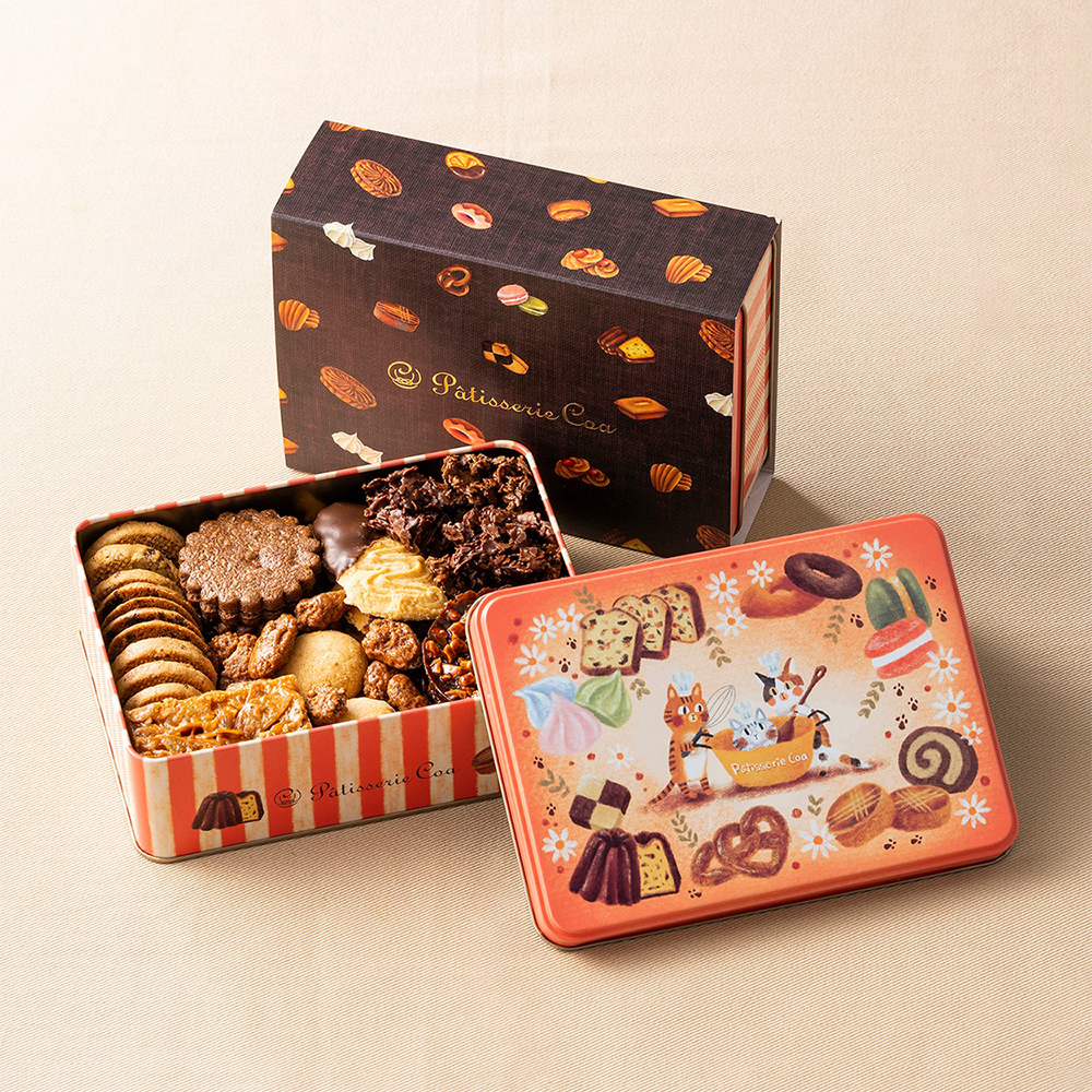 パティスリーコア自慢のクッキー缶の限定商品。程よい甘さのクッキーとリッチなショコラの贅沢な一品。