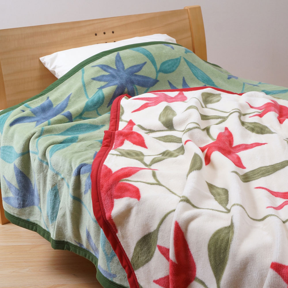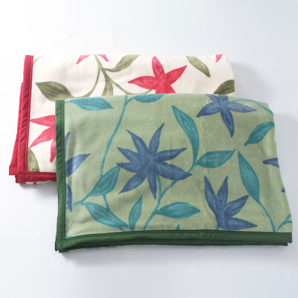 <セット内容>綿毛布(レッド、グリーン 各1)計2点