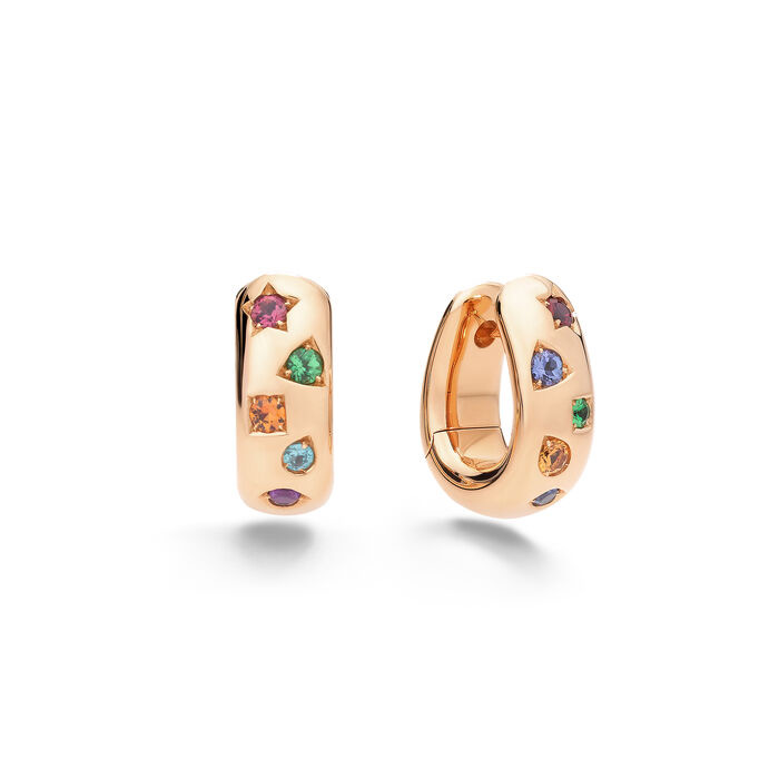 陽気でカラフル。コレクションを象徴する星やトライアングル、オーバルやスクエアの貴石をはめ込んだ、虹色に煌めくイヤリングです。※こちらの商品はピアスタイプです。