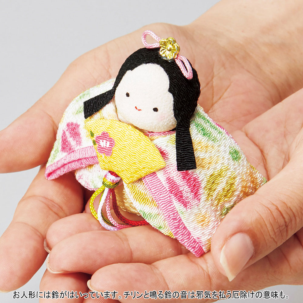 『「ぽ」ってりかわいいおひなさま。「て」のひらのなかほほえんで、「り」んりんすずのねしあわせはこぶ』というコンセプトの「ぽてりひな」。お人形には鈴が入っており、かわいい鈴の音は邪気を払う厄除のお守りにも。桜の几帳が華やかなコンパクトなセット。