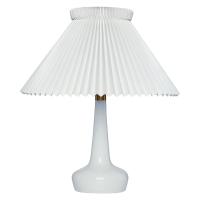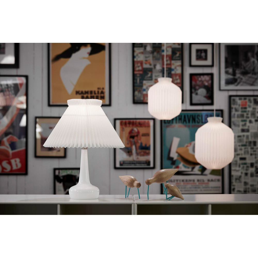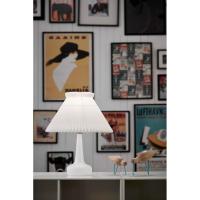 日本の折り紙にも影響を受けた、伝統の直線が美しいシリーズです。規則的に続く折りは美しい陰影を生み出し、レ・クリントの原点となっています。シェードは創業時から変わらず現在もデンマークの工房で熟練した折り職人によってひとつひとつ丁寧につくられています。 伝統的なシェードとガラスの組み合わせのテーブルランプです。
