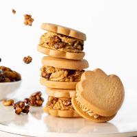 キャラメリゼしたくるみのカリカリとした食感と、2層のキャラメルクリームを、バターを贅沢に使ったかわいい手形のクッキーでサンドしました。