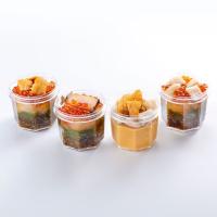 【冷凍便でお届けします。解凍まで時間がかかりますのでご注意ください。】中村家の看板商品である海宝漬を食べ切りサイズのセットでご用意しました。定番のあわび、うにの海宝漬に加え、人気のほたて、さらにおつまみにもご飯にも合ううに味噌の4個セットです。まるでスイーツのような見た目の小さく贅沢な海の幸をお楽しみください。