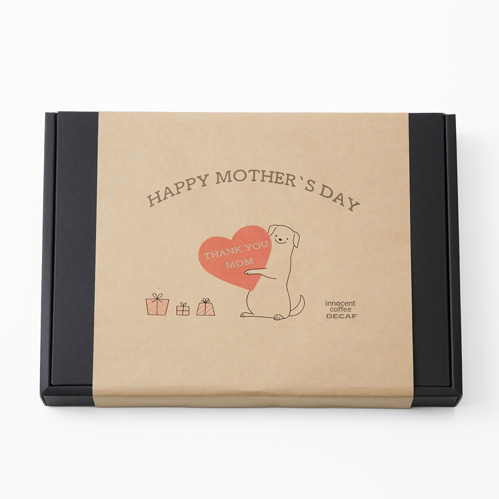 イノセントコーヒーのデカフェは、時間や体調を気にせずコーヒーを楽しみたい方のために生まれた一杯です。使用しているのは、厳選したスペシャルティコーヒー豆。長年研究し生まれたデカフェは、カフェイン除去から焙煎にもこだわり、豆本来の味を最大限に活かし、香り高く、甘みと穏やかな苦みを感じられる味わいに仕上がっています。ドリップバッグタイプは器具を選ばず、お湯を注ぐだけで簡単。ゆっくりとお湯を注ぐことで、コクのある一杯をお楽しみいただけます。1包ずつ個包装されたドリップバッグには、やさしいタッチの犬のイラストをあしらいました。箱を開けた瞬間に思わず笑顔になる母の日ギフトです。