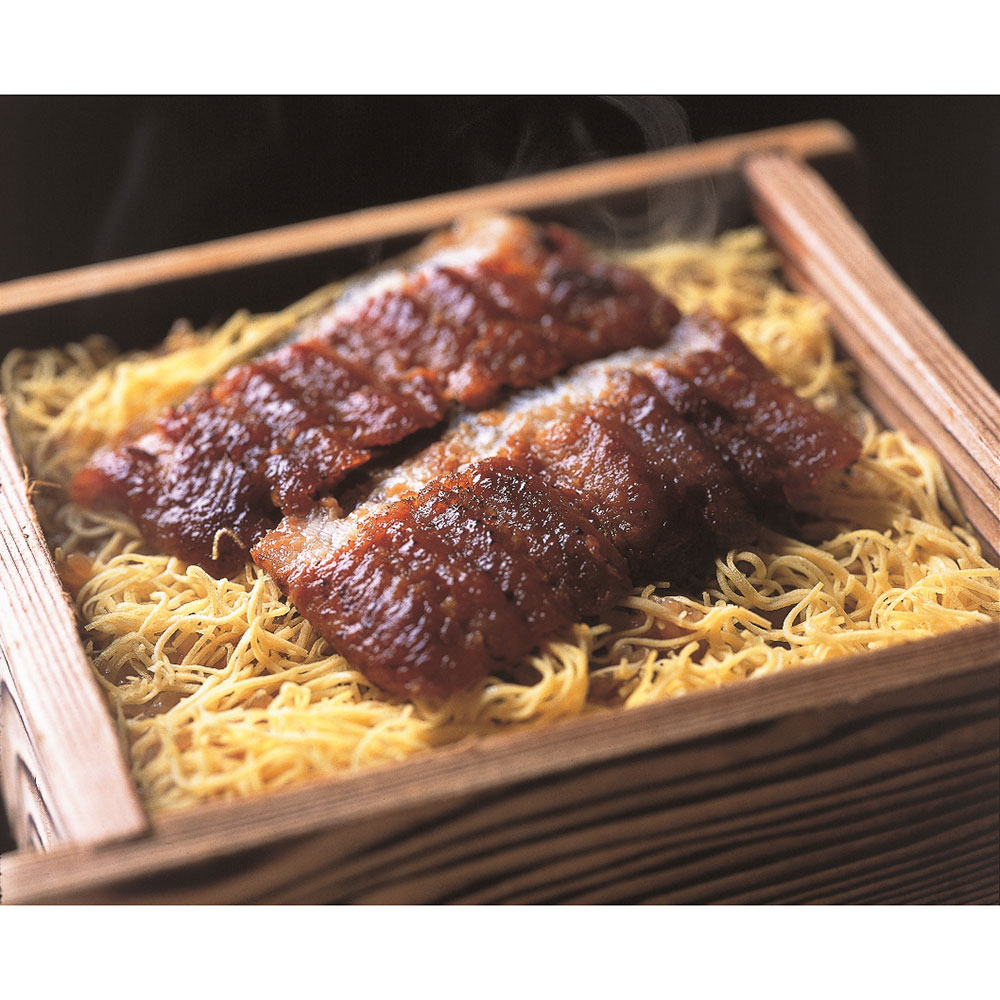 炭火で香ばしく焼きあげたうなぎの蒲焼を、近江米を使ったたれご飯にのせて錦糸卵とともに蒸しあげました。温めるだけで手軽に食べられる、わっぱ入りうなぎせいろ蒸しです。鰹の風味をきかせた「きも吸」とともにお召しあがりください。「お父さんいつもありがとう」のリボンシール付きです。