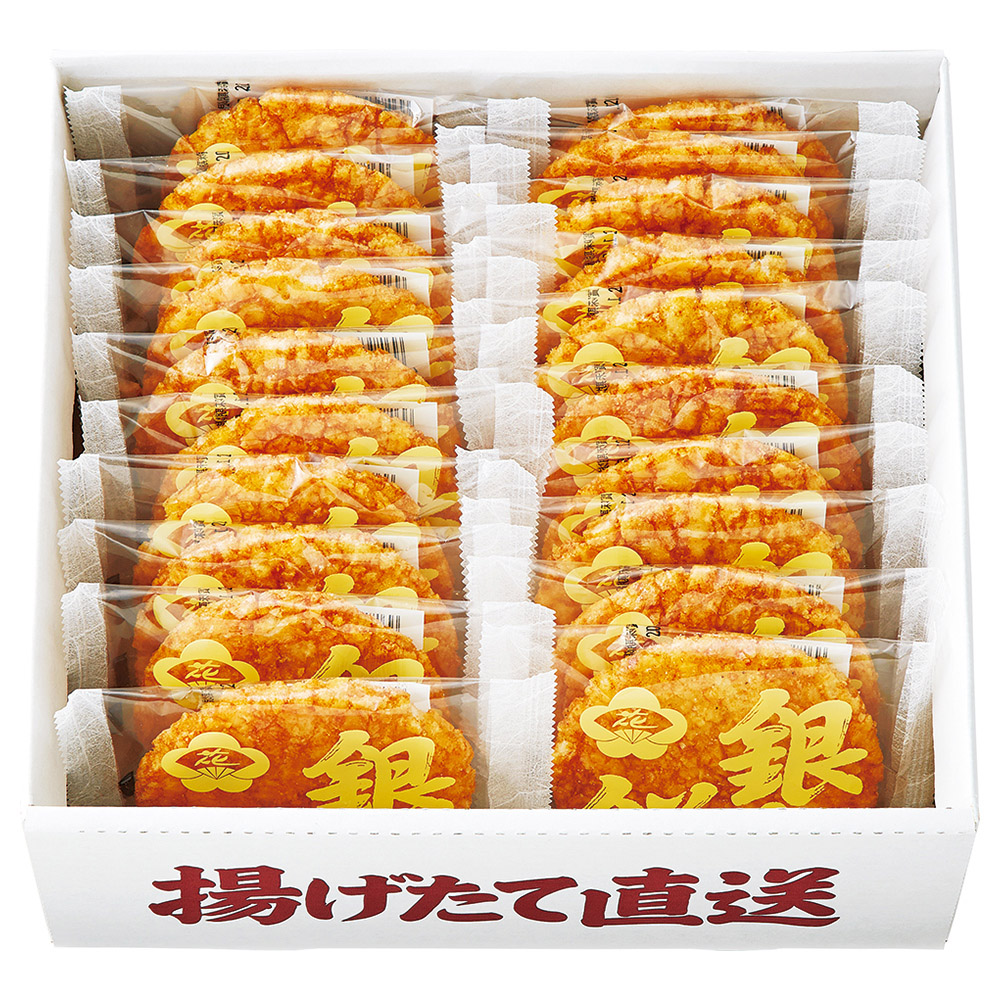 国産うるち米を使った大判生地をカラリと揚げました。サクッと軽い食感で醤油だれの甘辛い味。