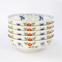 菊の花をかたどり、内外に小花柄を描いた可愛らしい器です。使い勝手がよく、華やかさを持ちながらも気取らない雰囲気は、ふだんにも、おもてなしにも使え、食卓に楽しさを添えます。