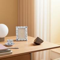 大切な瞬間を美しく縁取るフォトフレームがブルーフルーテッド プレインに加わりました。クラフツマンシップを感じる手描きの模様がフレームの前面と側面に描かれ、美しいブルーで写真を包み込みます。思い出に手描きのエレガンスを添えて華やかに飾ります。