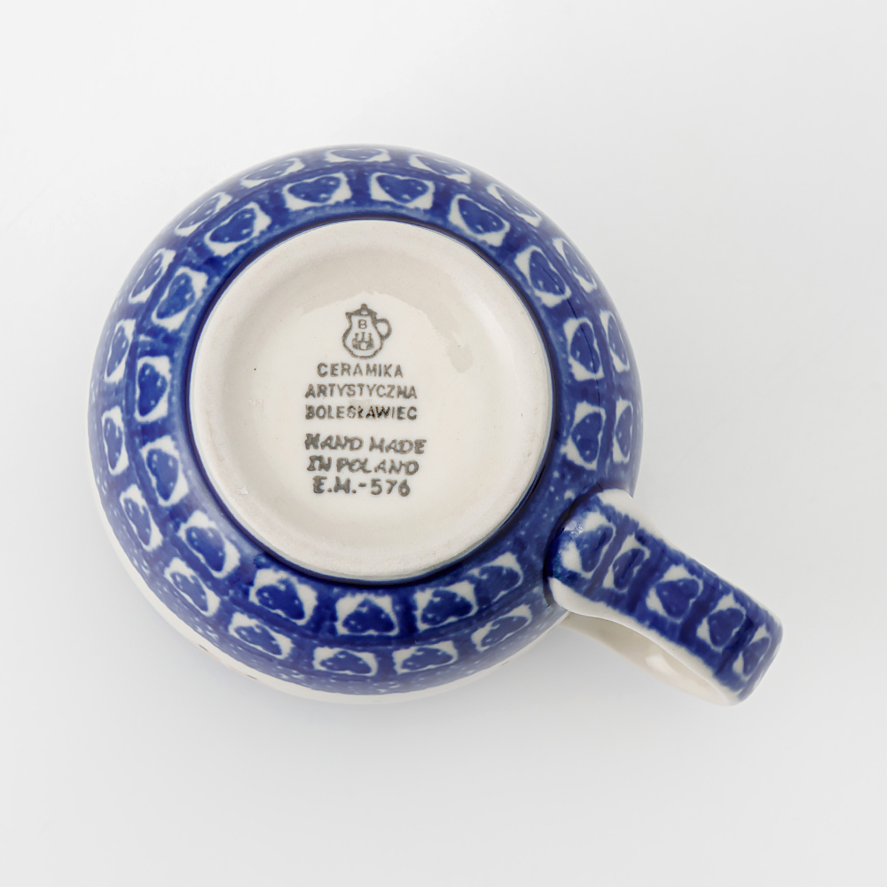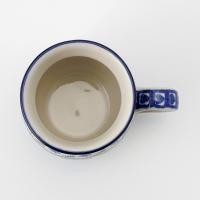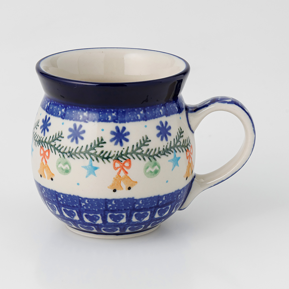 温もりのある形や洗練されたデザイン、日常使いに適した高い品質と耐久性で世界各国の家庭で愛されるハンドメイドの食器です。リースのようなグリーンの蔦とベルなどのクリスマスオーナメントが可愛らしい印象のデザインです。このマグカップの形状は湯気が出にくく冷めにくいように作られています。ぽってりとしたデザインは持ちやすく、手に馴染みます。