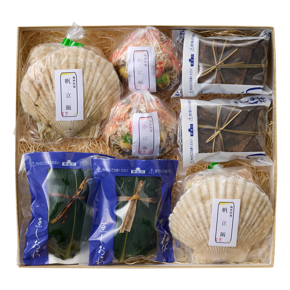 うなぎの朴葉蒸し150g×2、ふぐ笹130g×2、帆立飯230g×2、かに飯120g×2