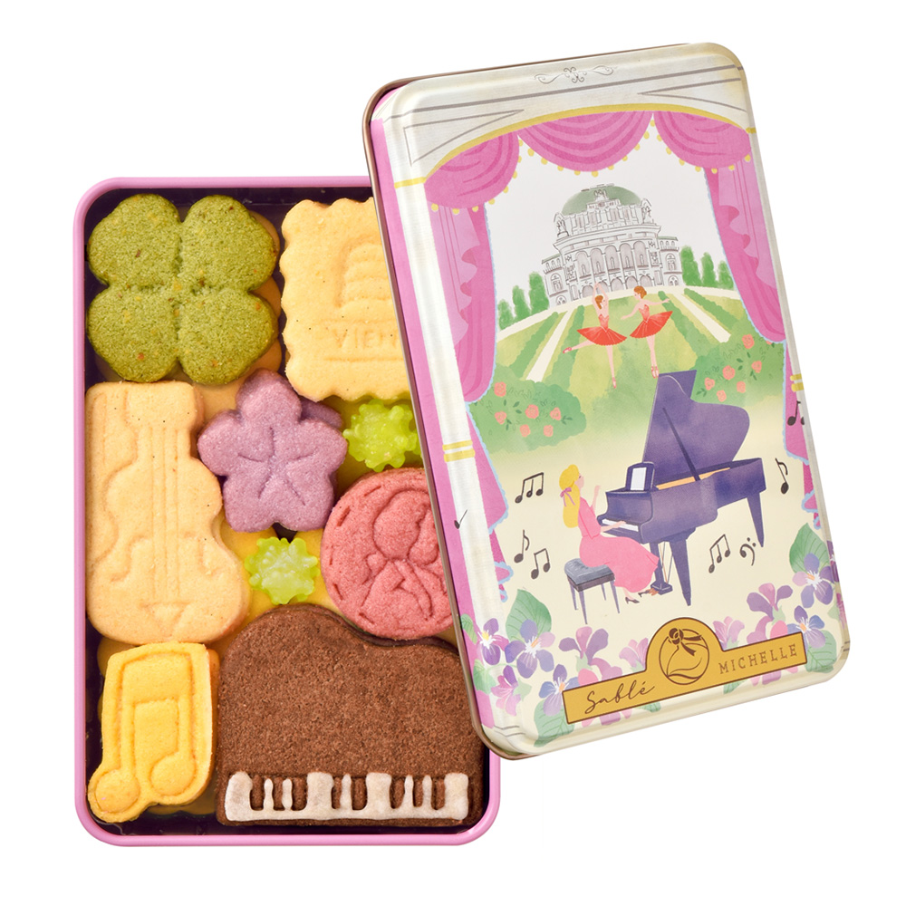 箱を開けたら広がる愛らしいサブレを、美しい世界の風景に見立てお届けする、イタリア缶・ウィーン缶の2缶セット。