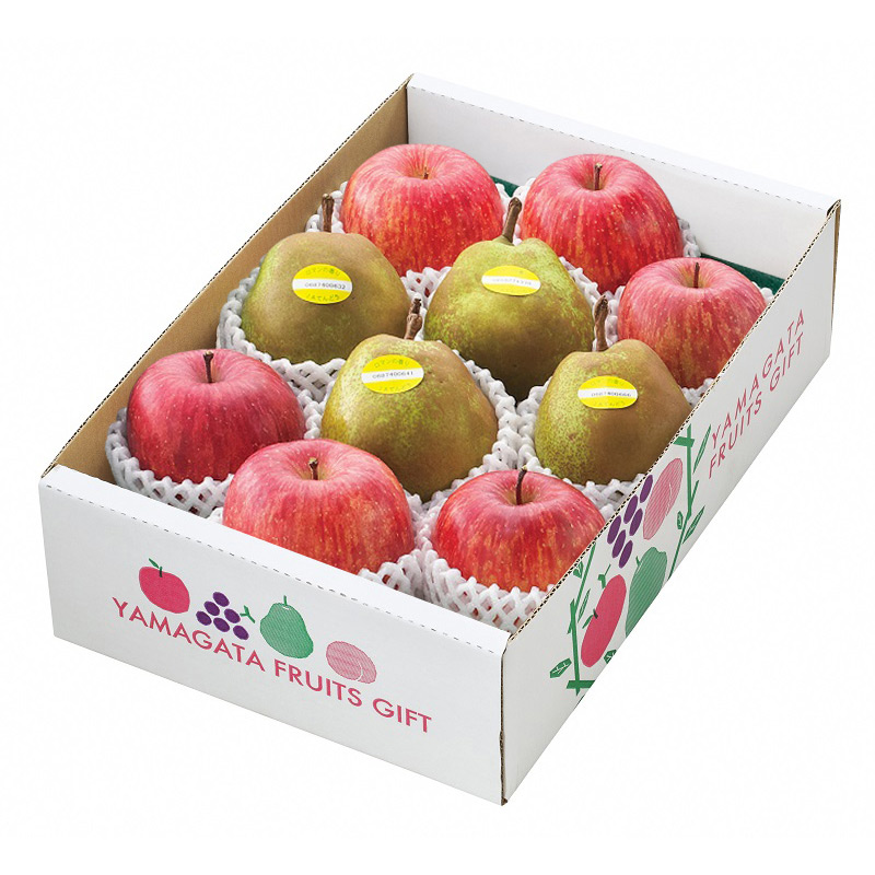山形県産ラフランス×4玉、サンふじ×6玉