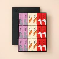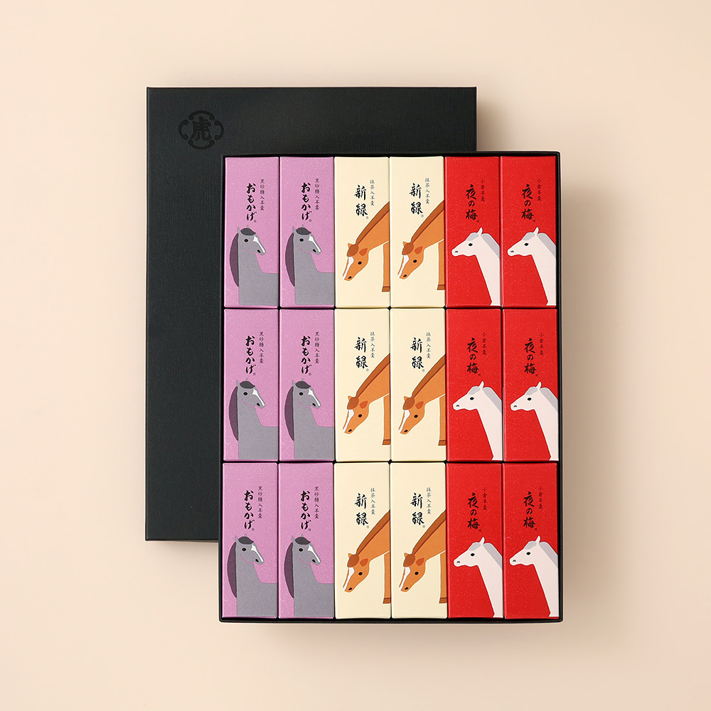干支パッケージ小形羊羹夜の梅(小倉羊羹)・おもかげ(黒砂糖入羊羹)・新緑(抹茶入羊羹)各50g×各6本