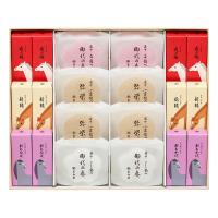 干支パッケージ小形羊羹夜の梅(小倉羊羹)・おもかげ(黒砂糖入羊羹)・新緑(抹茶入羊羹)各50g×各4本、最中 弥栄(小倉餡入)30g×4個、御代の春 紅(白餡入)・御代の春 白(こし餡入)各30g×各2個