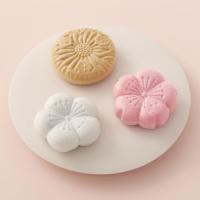 干支パッケージの小形羊羹「夜の梅」「おもかげ」「新緑」と、桜・菊・梅をかたどった最中を詰め合せました。