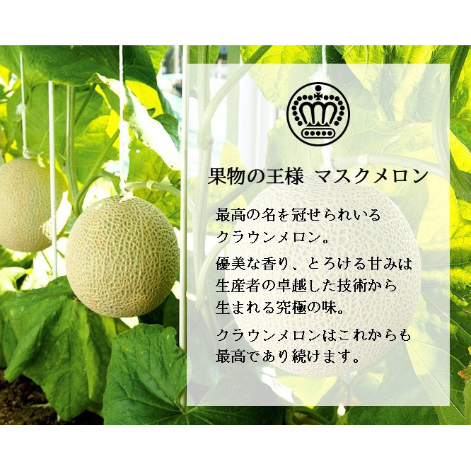 クラウンメロンでは1本の木で1つの実だけを選び残して育てていきます。その珠玉の実には長い伝統で引き継がれた栽培方法が注ぎ込まれています。すべての養分を1つのメロンに集中させることで、育つ美味しいメロン。糖度だけでなく、外観、内容など厳しい検査に合格した中から2025年度品評会入賞者のメロンをお届けいたします。香り高く、繊細な甘みを心ゆくまでお楽しみください。