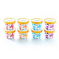バニラアイスクリームに、ホワイトチョコを加えたなめらかな食感の「ホワイトチョコレートバニラ」、スイートチョコに乳製品を加えまろやかな味に仕上げた「ミルクチョコレート」、ホワイトチョコにほんのり甘く香ばしいキャラメルを加えた「キャラメル」、チョコレートアイスにオレンジピールを混ぜ込んだ「オランジェ」。4種揃えたカッププレミアムチョコアイスのセットです。
