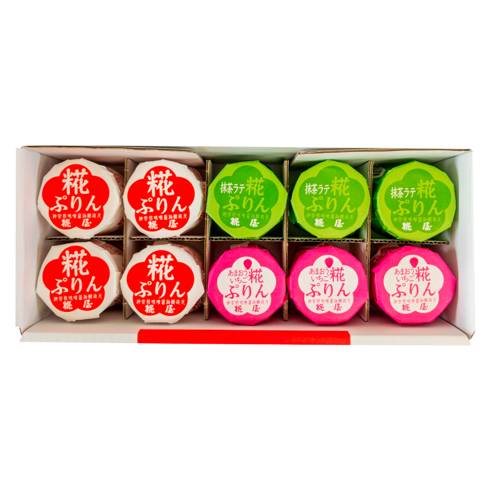 糀ぷりん80g×4個、抹茶ラテ糀ぷりん80g×3個、あまおう苺糀ぷりん80g×3個
