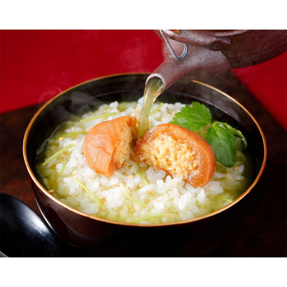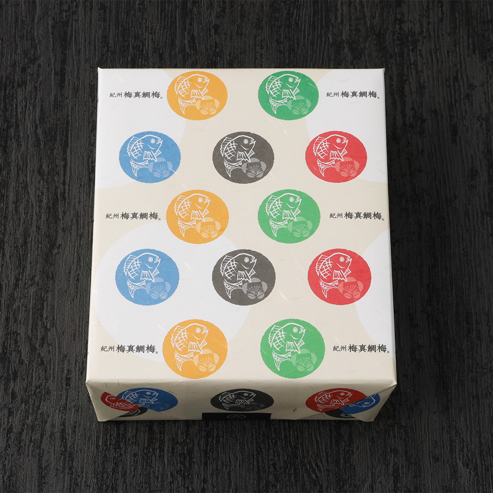 紀州南高梅の種を取り、中に真鯛・まぐろ・さけ・かつお・ぶりのほぐし身を詰めております。温かいご飯やお茶漬け、お酒の肴におすすめです。日本の海と山の魅力を詰めた一品は、大切な方への贈りものにも選ばれております。※色鮮やかで華やかな印象の包装紙は、高島屋限定の包装紙になります。