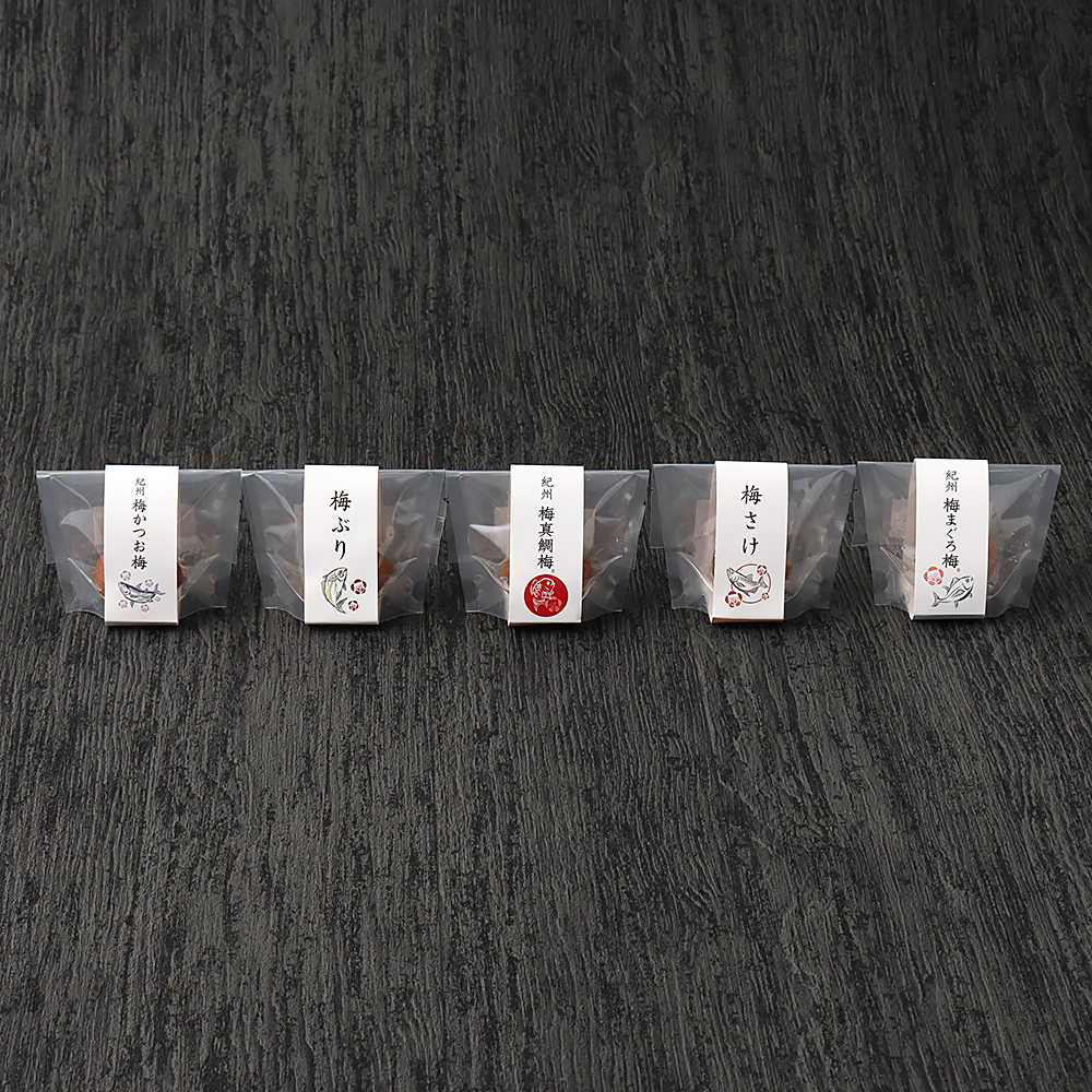 「紀州 梅真鯛梅」など人気の5種類の海の幸を紀州南高梅の中に詰めた、食欲がわき立つご飯のお供です。