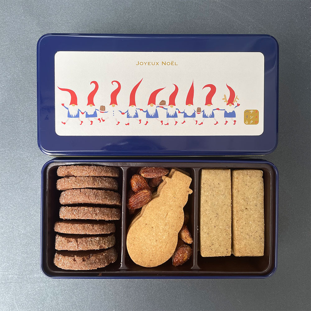 ヌメロサンクパリ人気の商品が詰まったクッキー缶にクリスマス限定でトリュフサブレが入りました。大人も満足なこのクッキー缶は、お茶菓子として、お酒のお供として、お食事前のアペリティフタイムにも使える万能なクッキー缶です。