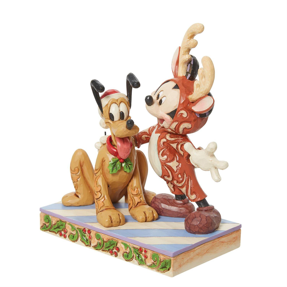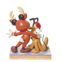 ミッキーとプルートがサンタとトナカイに扮した、表情豊かなクリスマスのフィギュア