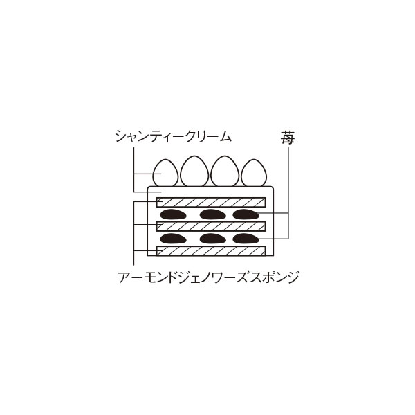 柔らかなアーモンド入りジェノワーズに生クリームと苺をサンド。苺とひいらぎチョコでデコレーション。