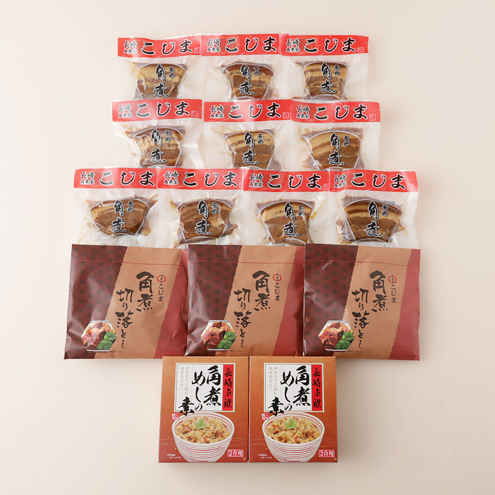 角煮45g×10個、角煮めしの素180g×2個、角煮切り落とし120g×3個