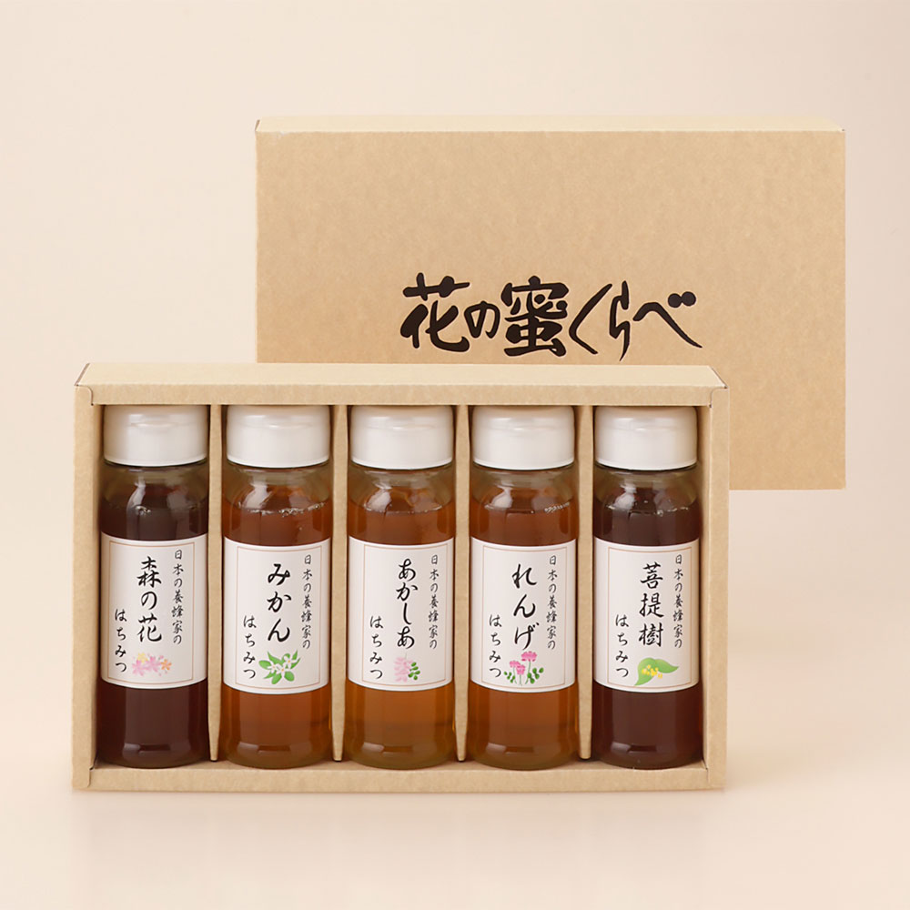 国産あかしあ蜂蜜200g×1本、国産れんげ蜂蜜200g×1本、国産みかん蜂蜜200g×1本、国産菩提樹蜂蜜200g×1本、国産百花蜜(森の花)200g×1本