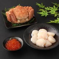 北海道産・毛ガニ360g、北海道産・ほたて貝柱250g、北海道産・いくら醤油漬100g