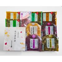 志ば漬きざみ65g、すぐききざみ65g、志そ漬きゅうり65g、里のごぼう53g、ぶぶ漬しぐれ40g、はりはり漬40g、在所漬きざみ40g、志そ風味漬40g、さくらの花30g、志ば漬茶漬6g×5 計10種類14点