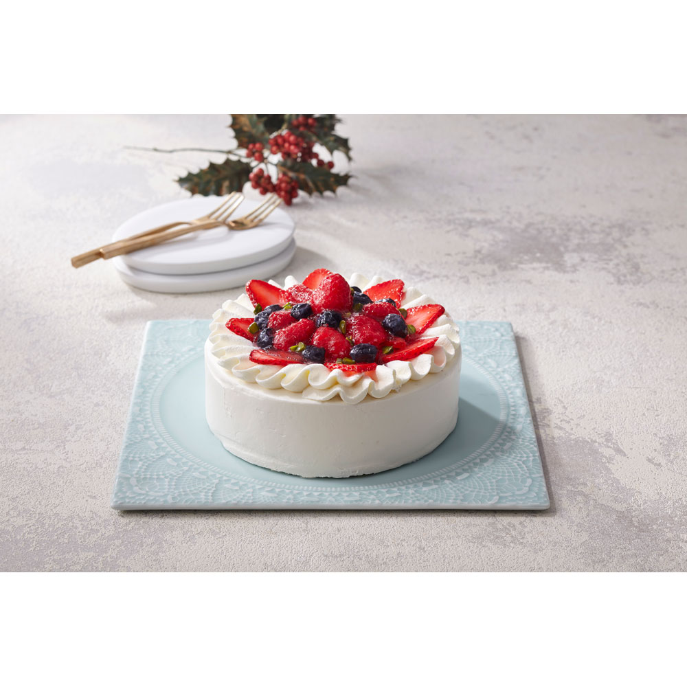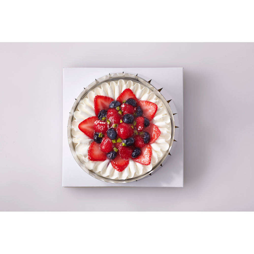 【冷凍便でお届けします。解凍まで時間がかかりますのでご注意ください。】<解凍時間の目安:冷蔵で約10時間>北海道産生クリームにストロベリー、ブルーベリー、ラズベリーを豪華に飾りつけました。アクセントにピスタチオをトッピング。