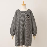 リラクシングウェアとしても使える、ボーダー柄のニット割烹着です。伸縮性のあるニット生地は着脱も容易で人気の素材です。