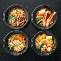 素材と味を吟味し、京風だしで仕上げた旨味豊かな4種の小鍋。アツアツのおいしさを、電子レンジで簡単に。
