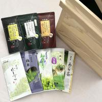 - アサツユ4袋(心しずか100g、初みどり100g、あら茶100g、みどり茶100g)、特上くき茶100g、プレミアムティーバッグ3袋(煎茶36g(3g×12)、抹茶入り玄米茶45g(3g×15)、ほうじ茶30g(2.5g×12))、茶箱(10kg用)